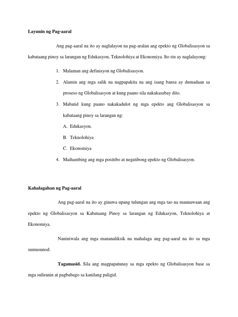 Ang una ay ang siyentipikong kaalaman ay may kinalaman sa mga bagay na may buhay. Mabuti at di mabuting epekto ng globalisasyong. Cartolina Manila paper Marker Chalk Black board Module III.