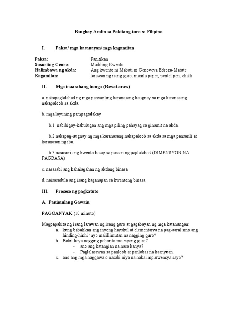 Maikling Kuwento Ni Mabuti Gabay Sa Pagbasa
