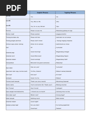 Indonesian English Filipino Tagalog Language Southeast Asia