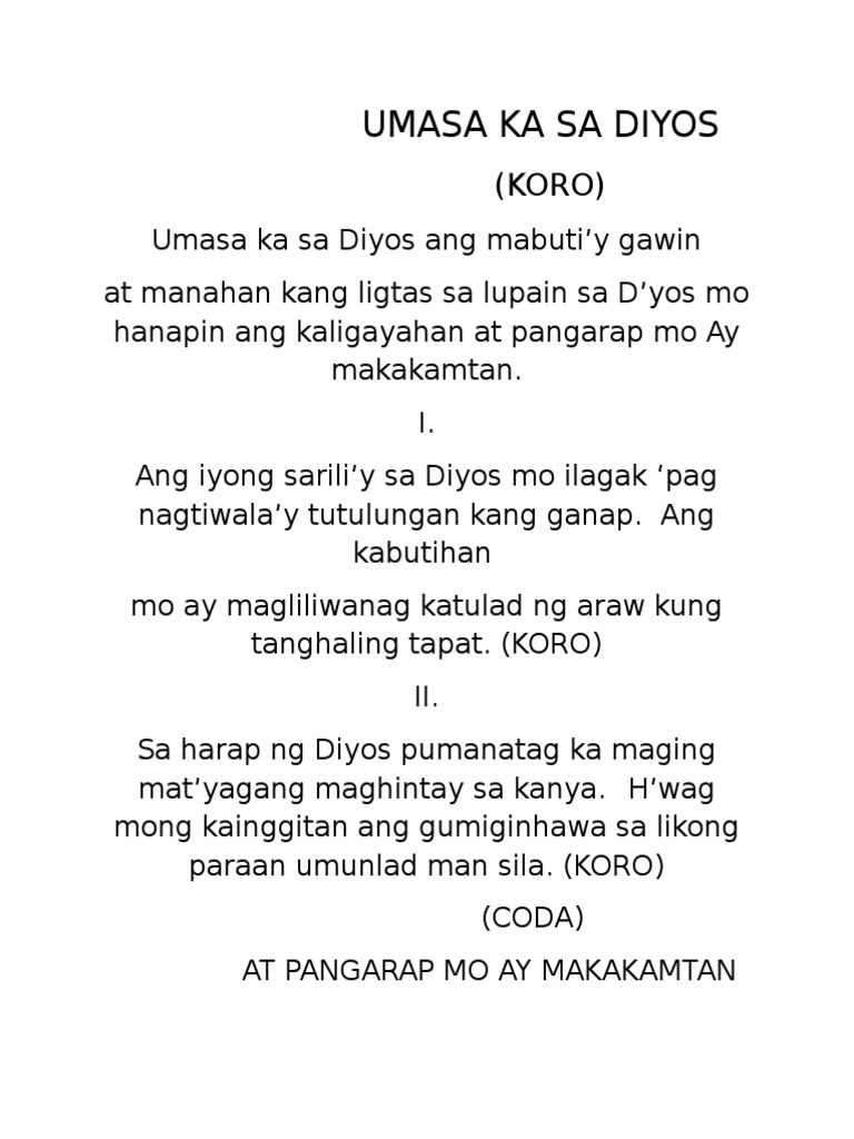 Awit Ng Puso Di Ko Kayang Pigilin Lyrics and Chords. Mabuti ang Diyos sa atin- How good is God God is so good to me God is so good God is so good to you God is so good God is so good to him God is so good God is so good to us Clap your hands and wave Go along with it and dance dance Declare brother God is good God is good to us -. 822016 verse a ang diyos ay mabuti 3x bm7 sa akin a ang diyos ay mabuti 3x e a7 sa akin d cm fm mahal niya ako mahal ko rin siya bm e a ang diyos ay mabuti sa akin chorus d siya ang kanlungan a ang kalakasan b e matibay na sandigan d a di nagbabago di nagkukulang b e siya sa akin nagmamahal.