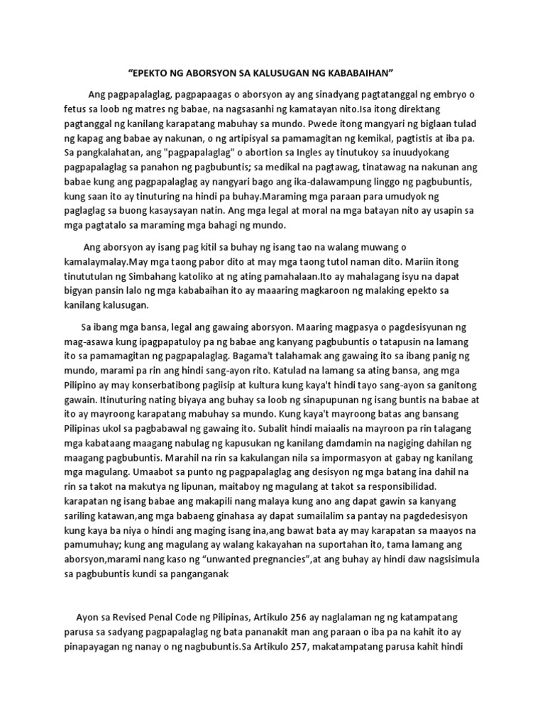 Epekto Ng Aborsyon Sa Kalusugan Ng Kababaihan Docx