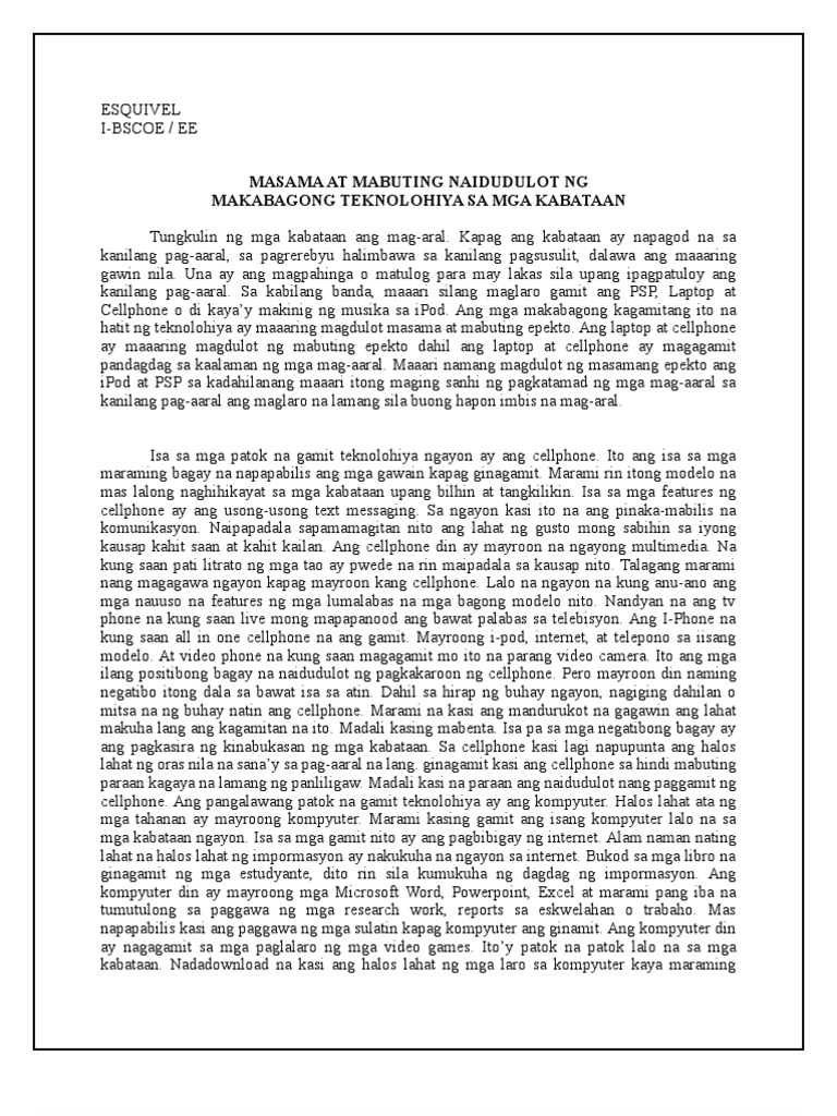 Mabuti At Di Mabuting Epekto Ng Paggamit Ng Teknolohiya By Justine Revilla