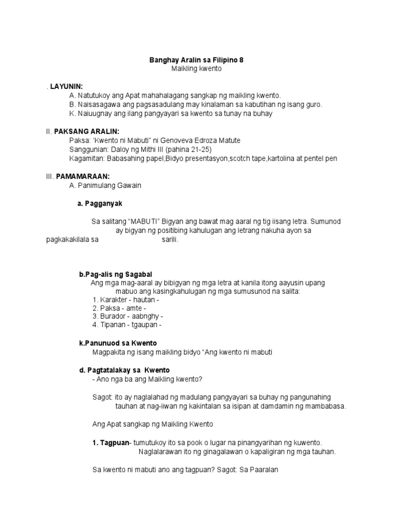 Maikling Kuwento Ni Mabuti Gabay Sa Pagbasa
