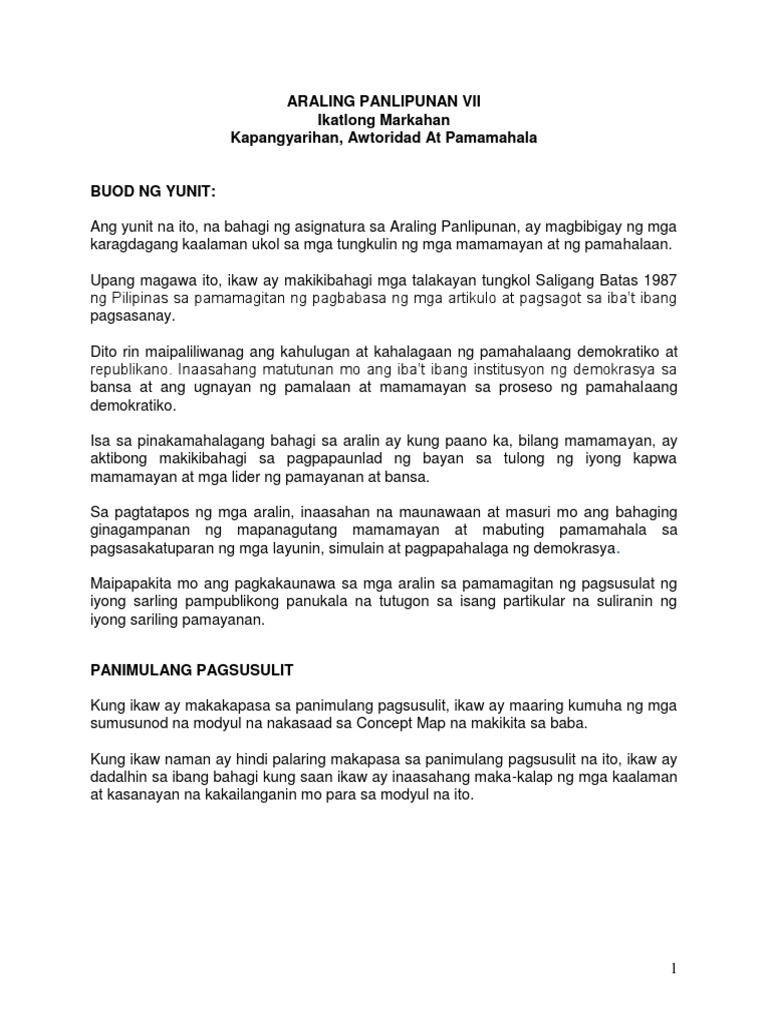 Ap G7 Kapangyarihan Awtoridad At Pamamahala Pdf