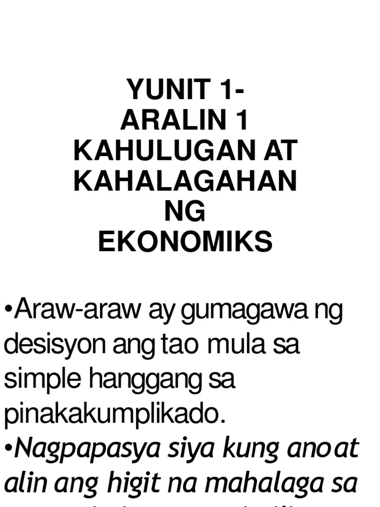 Aralin 1 Kahulugan At Kahalagahan Ng Ekonomiks Pptx