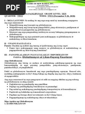 Layunin Paraan Sirkumstansiya at Kahinatnan ng Makataong KilosReflectionMahalaga ang layunin ng makataong kilos sapagkat ito ang nagsasabi kung ang kilos ay mabuti o masama. 2232021 Ang konsepto ng globalisasyon ay mayroong mabuti at masamang dulot sa pamumuhay ng mga Pilipino. Pangatlo binago ng globalisasyon ang workplace at mga salik ng.